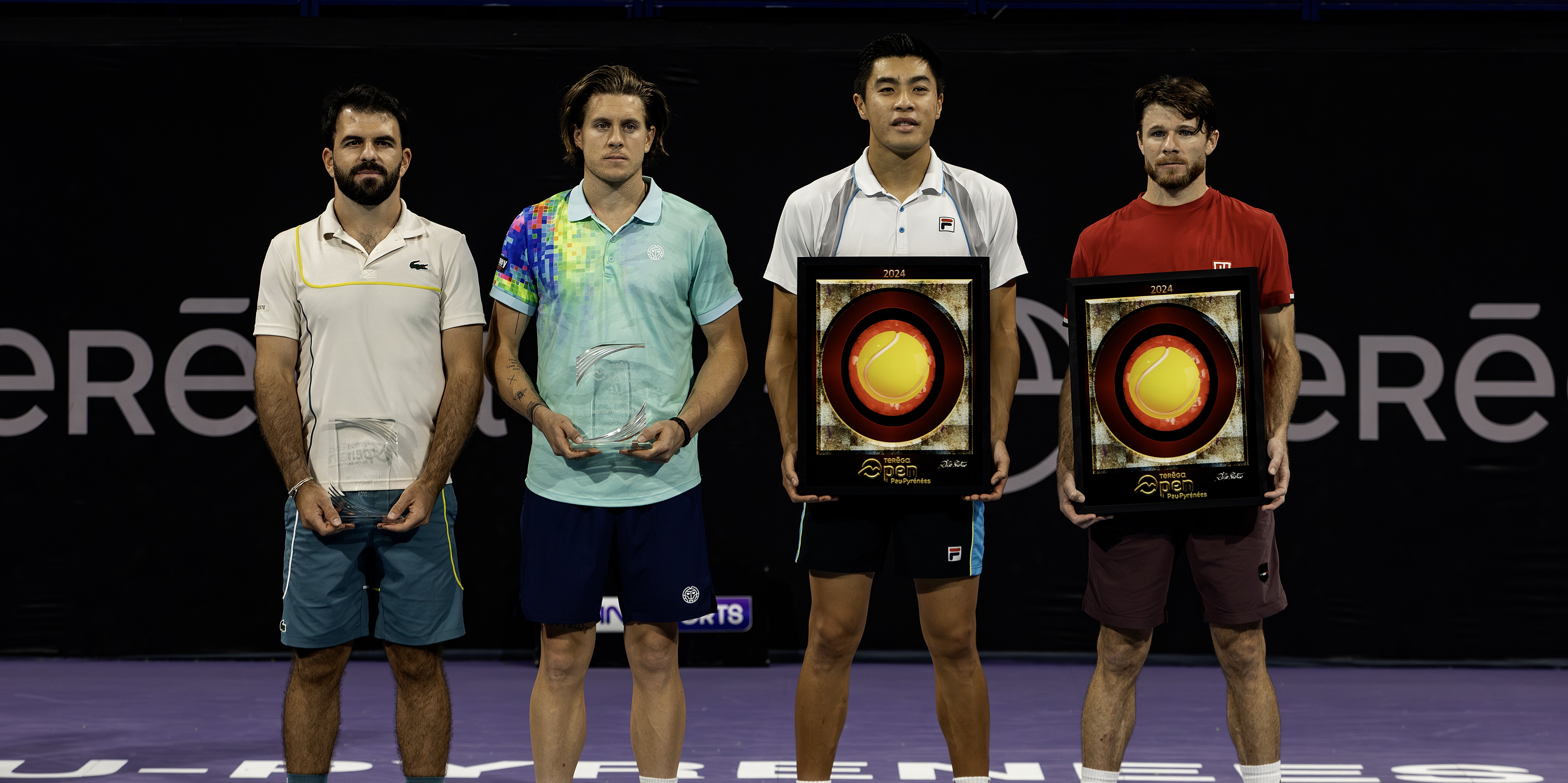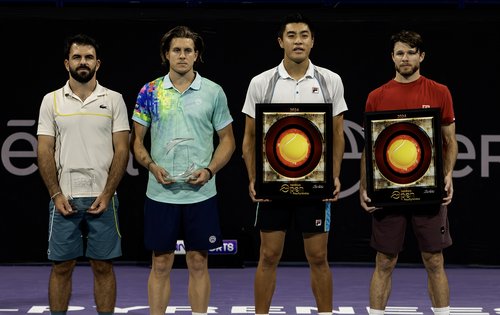 Von links nach rechts: die Finalisten Romain Arneodo und Sam Weissborn, die Sieger Brandon Nakashima und Christian Harrison.