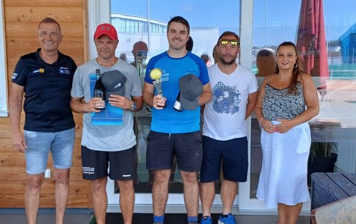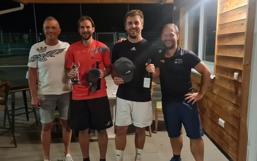 Bei den Damen kürten sich erstmals die Junge Elena Reindl (l.) mit Partnerin Lara Hadek (r.) zu den Turniersiegerinnen. Zu den Siegern der Herren-Hauptrunde kürten sich Klaus Tölly und Peter Klepits, denen von Stadträtin Manuela Horvath die Siegertrophäen übergeben wurde. Das Finale der Herren-Nebenrunde, das spät abends bei Flutlicht stattfand, brachte als Sieger Thomas Herrklotz Thomas und Florian Hotwagner hervor.