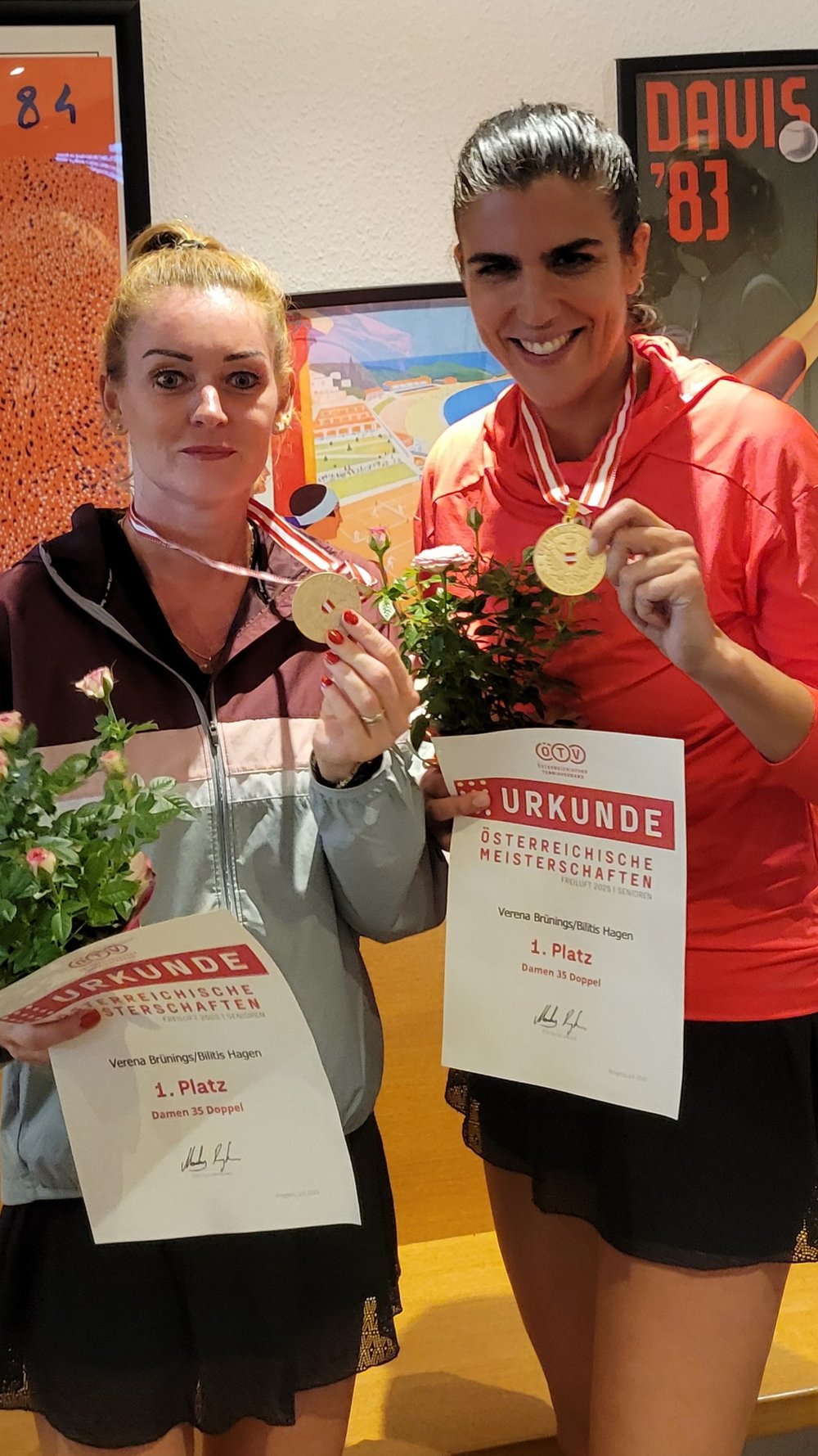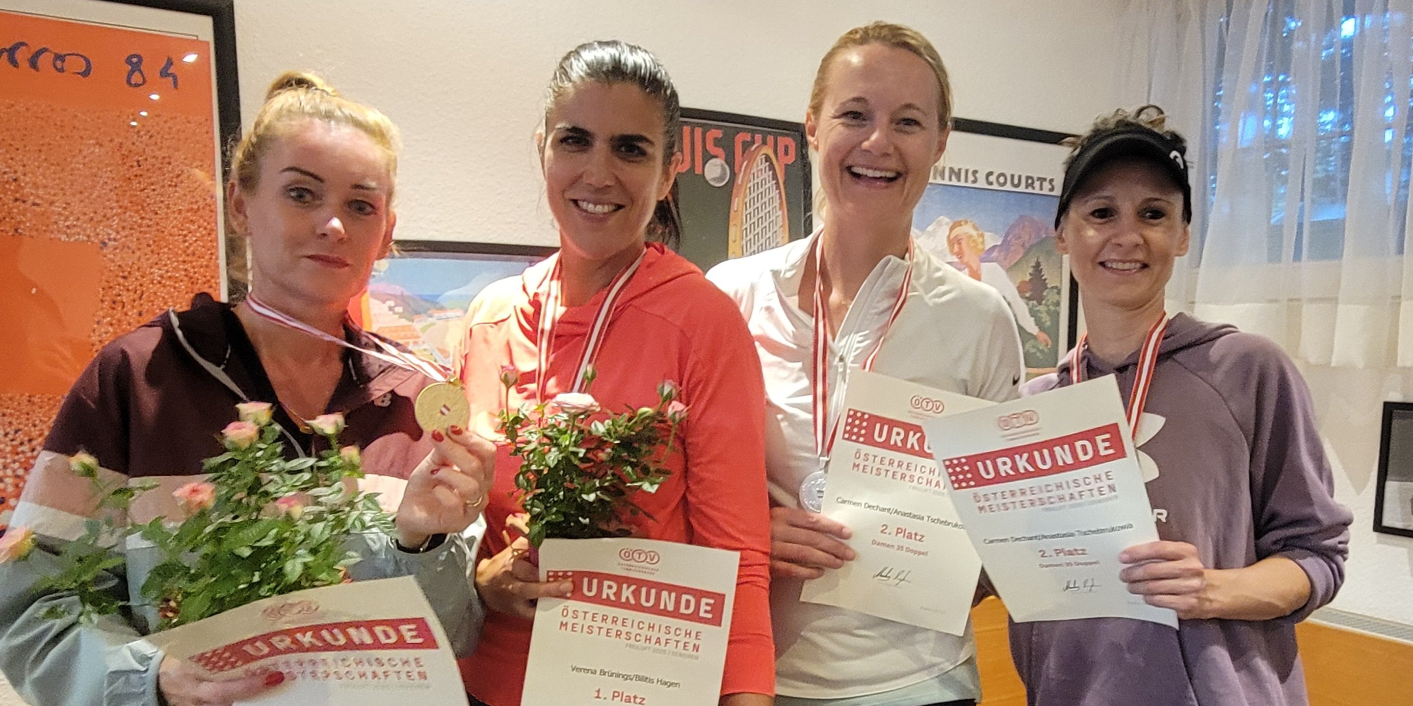 Die vom 5. bis 11. Juli in Bregenz stattfindende Österreichische Seniorenmeisterschaft 2025 ist in vollem Gang. An den ersten drei Spieltagen setzten sich soweit die Favorit:innen durch, es gab bisher noch keine ganz großen Überraschungen. Der erste Meisterinnentitel wurde bereits am Montagabend vergeben. Verena Brünings und Bilitis Hagen vom gastgebenden TC Bregenz holten sich mit einem 6:3, 6:2 gegen Carmen Dechant und Anastasia Tschebrukowa den Titel im Damendoppel 35, wo ausschließlich VTV-Spieler:innen teilnahmen.