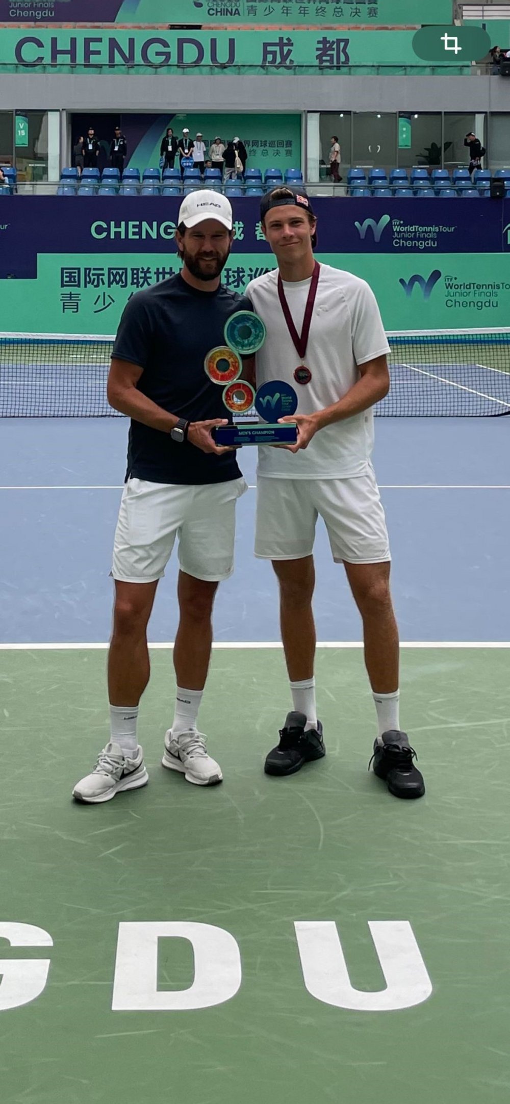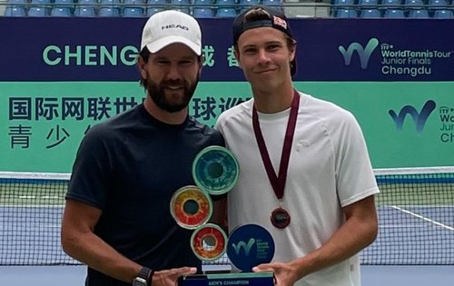 2015 Andrey Rublev (aktuell ATP-Rang 5), 2016 Seongchan Hong (ATP 197), 2017 Emil Ruusuvuori (ATP 61), 2018 Brandon Nakashima (ATP 134), 2019 Holger Rune (ATP 6) – und 2023 Joel Schwärzler: Österreichs derzeit größtes Tennistalent hat sich an diesem Sonntag sensationell in die teils hochprominente Siegerliste der 2023 ITF World Tennis Tour Junior Finals in Chengdu eingetragen. Der drittgereihte Vorarlberger (ITF 7) setzte sich im Endspiel mit 6:3, 7:6 (6) durch, in einem Linkshänderduell mit dem topgesetzten Mexikaner Rodrigo Pacheco Mendez (ITF 2) – ausgerechnet sein Zimmerkollege in diesen Tagen in der chinesischen Metropole und Hauptstadt der Provinz Sichuan.