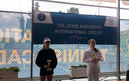 Ebenfalls zum ersten Mal mit einem Siegerpokal auf der Tennis Europe Tour ausgestattet wurde Leonie Rabl. Die Rohrbacherin „flog“ mit ihrer italienischen Partnerin Emma Scaldalai regelrecht ins Endspiel. Dort sollte es gegen das israelische Duo Vasilina Andronov/Sapir Reznik sehr spannend werden. Die Israelinnen holten Satz Nummer eins im Tiebreak, der zweite ging mit 6:3 an Rabl/Scaldalai. Im Match-Tiebreak zogen die österreichisch-italienische Paarung schnell davon und feierte einen ungefährdeten 10:4-Erfolg. Auch im Einzel lief es für die österreichische U14-Meisterin sehr gut. Die Umstellung auf das veränderte Klima und die Platzverhältnisse im Vergleich zu Wolfsberg gelang schnell. Vier klare Siege (inklusive Quali) brachten Rabl ins Viertelfinale und bestätigten die aktuell bestechende Form. Auch in der Runde der letzten acht lief es vorerst gut. Durchgang eins holte sich die Rohrbacherin mit 6:4, doch dann kam Gegnerin Emiliia Kats immer besser in Schwung. „Es war dann richtig schwer Punkte zu machen“, erzählt Leonie. Die Folge: Mehr Risiko im eigenen Spiel führten zu mehr Fehlern und schließlich zu einer Niederlage. „Auch der Return hat dann nicht mehr nach Wunsch geklappt“, resümiert Rabl.