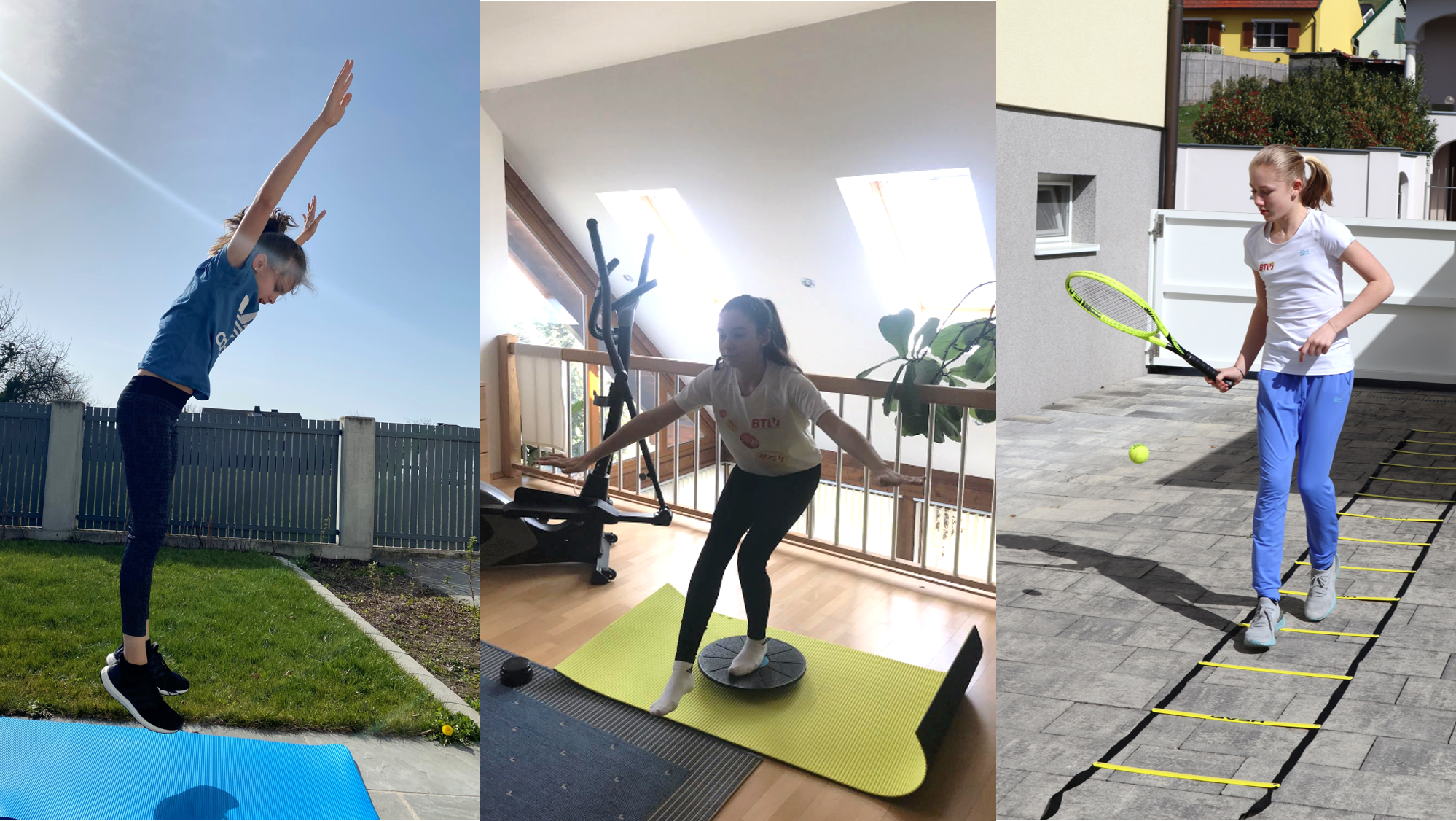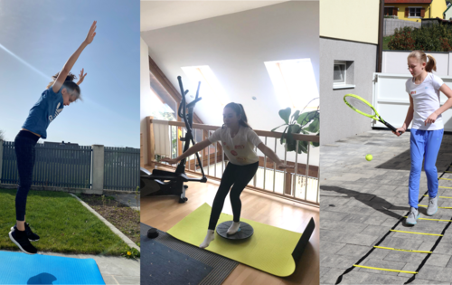 Leonie Rabl (12 Jahre) spult ihre Laufeinheiten schon am Vormittag ab. Auch das E-Learning wird schon vor dem Mittagessen erledigt. „Die Lehrer versorgen uns mit sehr viel Lernmaterial. Das Ganze müssen wir meist wöchentlich abgeben“, erzählt die Spielerin des TC Rohrbach. Am Nachmittag steht die körperliche Fitness im Vordergrund. Dabei werden die Bereiche Stabilisation, Koordination, Schnelligkeit- und Krafttraining abgedeckt. Wie ihre BTV-Kolleginnen hofft Jenny aber „dass sie bald wieder auf dem Platz stehen kann und zumindest nationale Turniere stattfinden.“